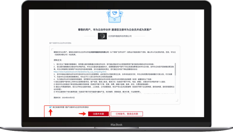 进入注册界面后,勾选“ 阅读并同意”,然后点击“注册并关联”↑ ——————————————————————————————