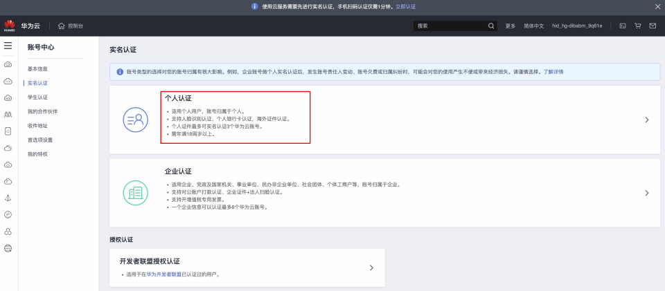 选择“个人认证”↑ ——————————————————————————————