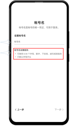 ————————————————————— ④设置账号名(注意规则)