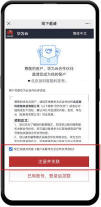 —————————————————— 第三步、这时候就进入注册页面了,开始注册 ①勾选“我已阅读并同意”,点击“ 注册并关联” ②点击“ 同意 ”
