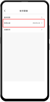 ————————————————————— 第四步、进入实名认证 ①右下角进入“我的” ②点击上方头像最右侧">"按钮,进入账号管理页面 ③账号管理页面点击“实名认证” ④实名认证页面点击“用户实名认证”